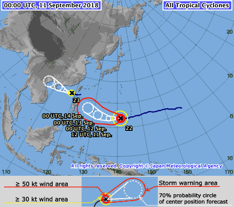 Thông tin mới nhất từ Trung tâm Dự báo Khí tượng Thủy văn quốc gia cho biết: Hồi 10 giờ ngày 11/9, vị trí tâm bão ở vào khoảng  20,8 độ Vĩ Bắc; 118,2 độ Kinh Đông, cách đảo Hải Nam (Trung Quốc) khoảng 800km về phía Đông Đông Bắc.